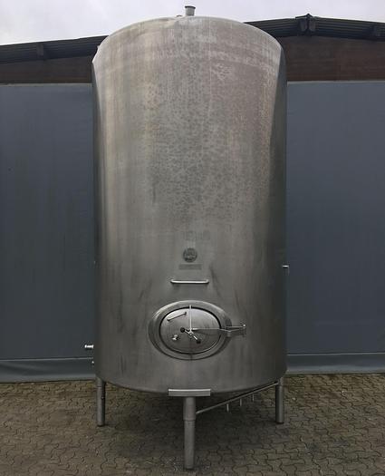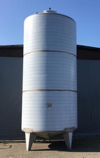 20.000 Liter, Best.-Nr.: T3918, Liter: 20.000 , Material: Rostfreier säurebeständiger Stahl AISI 316, Auf Lager: Ja, Menge auf Lager: 1 Stk., Artikel: Tank, Stehend: 4 Stk. Füße, Oben: Konisch 15, Unten: Konisch 20, Doppelmantel: Nein, Isoliert: Nein, Tankdeckel: Oben 500 mm., Rührwerk: Nein, Innendurchmesser: 2350 mm., Gesamthöhe: 5575 mm., Plattentyp: Gebeizt Typ B2, Innenveredlung: Alle Schweißnähte sind geschliffen Korn 60, Außenfinish: Alle Schweißnähte sind sandgestrahlt, Arbeitstemperatur: 0- +50 C, Dichte: 1,0, Arbeitsdruckbehälter: Drucklos, Hersteller: Handing