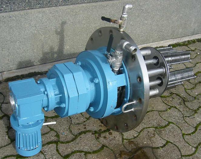 Best.-Nr.: R651, Inline-Mischer, Edelstahl, Ystral, Typ Z 7.500 SL., 7,5 kW Motor 1450 U/min. 380 V., Cuno-Filter., 320 x 600 mm., Mechanisch., Material: Edelstahl AISI 304