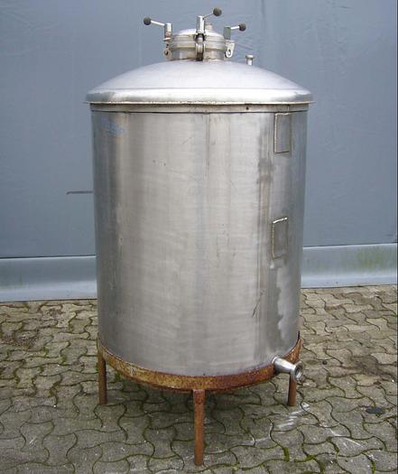 600 Liter, Best.-Nr.: T3210, Tank, Edelstahl,, oben geschlossen, auf Füßen stehend., Klöpperdeckel,, Revisionsdeckel oben., 850 mm., Liter: 600, Material: Edelstahl AISI 304