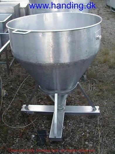 225 Liter, Best.-Nr.: T257, Trichter, Edelstahl, offen, stehend auf Gestell mit Rädern., Konischer Boden., 800 mm., Liter: 225, Material: Edelstahl AISI 304