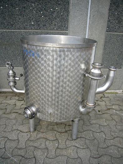 300 Liter, Best.-Nr.: T2557, Liter: 300, Material: Edelstahl AISI 304, Auf Lager: Ja, Menge auf Lager: 3 Stk., Artikel: Tank, Stehend: Auf glattem Boden, Oben: Konisch, Innendurchmesser: 680 mm., Gesamthöhe: 980 mm., Sonstiges: Deckel oben und 2 Stk. Anzahl der Griffe
