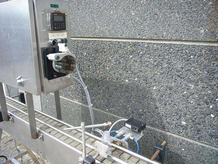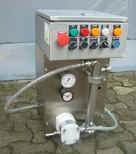 Best.-Nr.: F753, Abfüllmaschine, Edelstahl,, Alwid Universal D,, Kolbendosierung 0-12,5 l/Hub, 4 Fülldüsen mit, Bodenfüllung und Abtrennung., Tropfschale., Vorbereitet für Förderband., Waage MwSt., Material: Edelstahl AISI 304