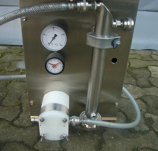Best.-Nr.: F890, Abfüllmaschine, Edelstahl,, 1 Stk. Füllkopf mit Zähler., Schlauchpumpe mit variabler Drehzahl,, Lamellenförderer B 100 x L 1500 mm., Schleusensystem., Material: Edelstahl AISI 304