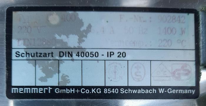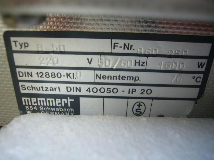 53 Liter, Best.-Nr.: D1193, Liter: 53, Material: Edelstahl AISI 304, Auf Lager: Ja, Menge auf Lager: 1 Stk., Artikel: Inkubator, Innenmaße: T 330 x B 380 x H 400 mm., Außenmaße: T 520 x B 550 x H 670 mm., Temperatur: Max 220 C, Leistung: 220 Volt - 1400 W., Einlegeboden: 1 Stk., Hersteller: Memmert, Modell/Typ: UM 400, Sonstiges: Timer