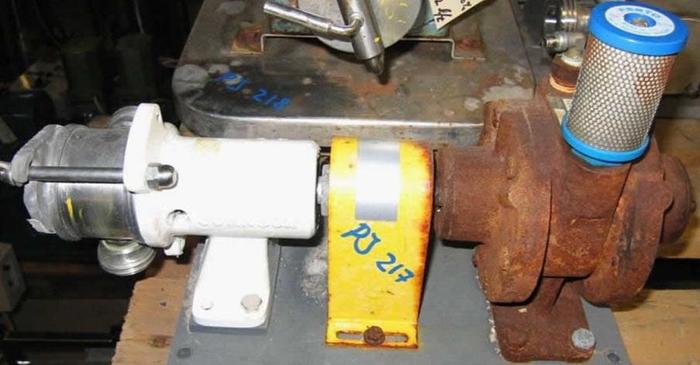 Best.-Nr.: PJ217, Impellerpumpe, Edelstahl,, 1, Jabsco Modell 10-2.001-C., Auf Fundament montiert., Druckluftbetrieben., Variable Drehzahl und Kapazität., Material: Edelstahl AISI 304
