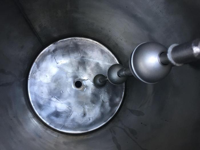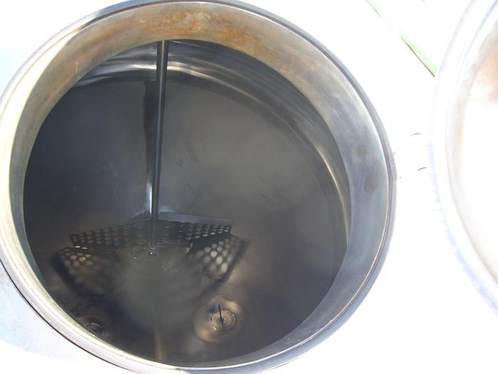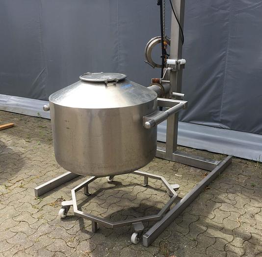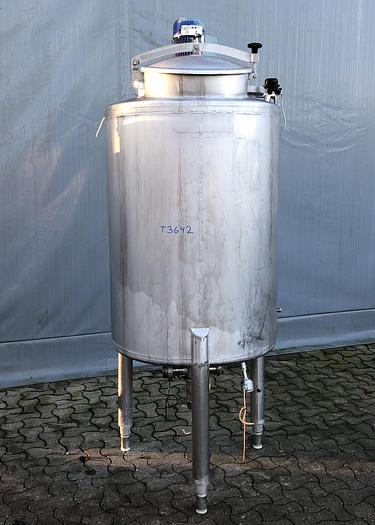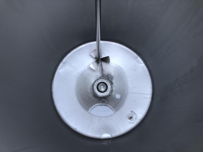 550 Liter, Best.-Nr.: T3642, Liter: 550, Material: Edelstahl AISI 304, Auf Lager: Ja, Menge auf Lager: 1 Stk., Artikel: Tank, Stehend: 3 Stk. Füße, Oben: Konisch, Unten: Konisch, Tankdeckel: Oben, 430 mm., Rührwerk: Ja, Rührwerkstyp: 3-Blatt-Propeller, Motor: 0,37 kW - 220/380 Volt - 920 U/min., CIP: Ja , Innendurchmesser: 800 mm., Gesamthöhe: 2170 mm.