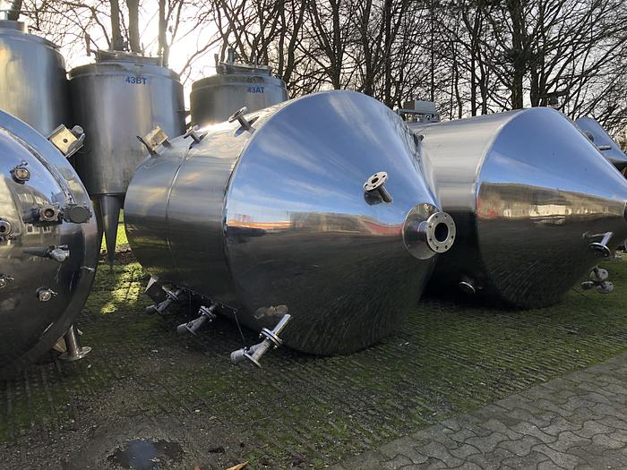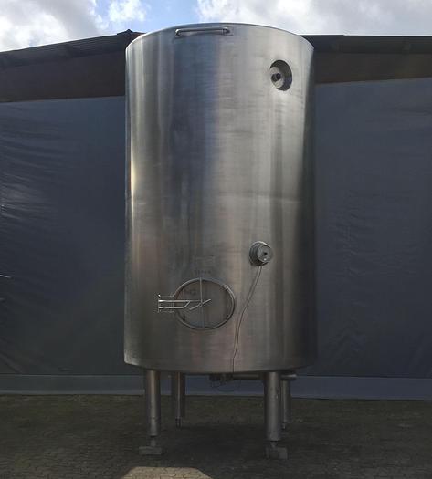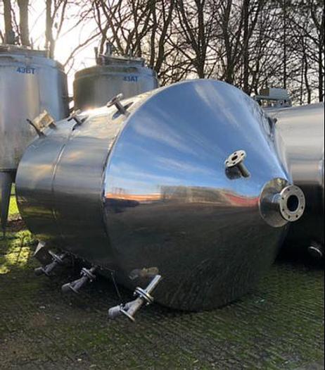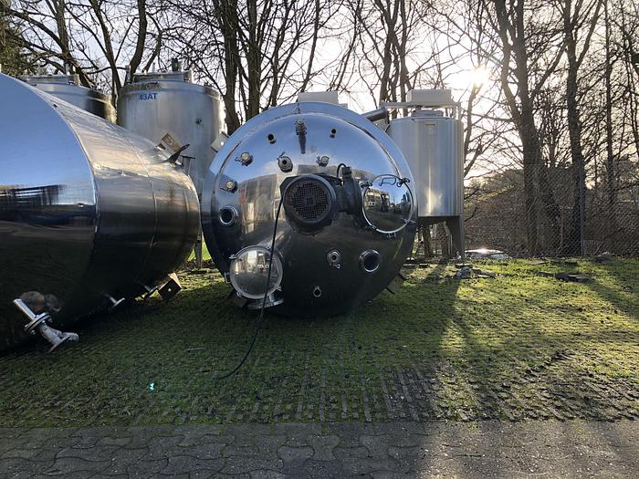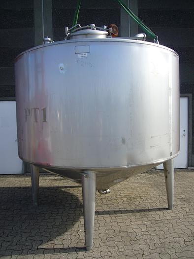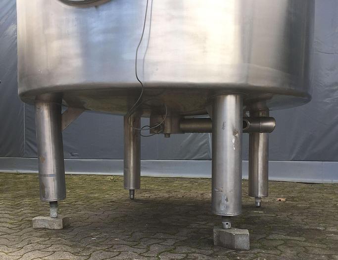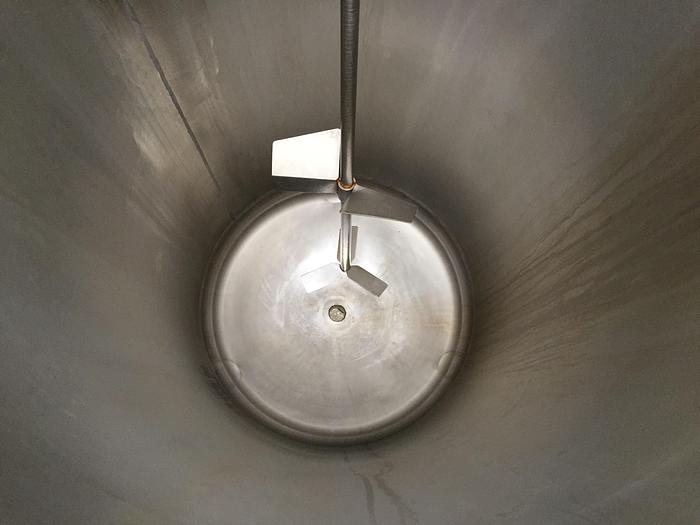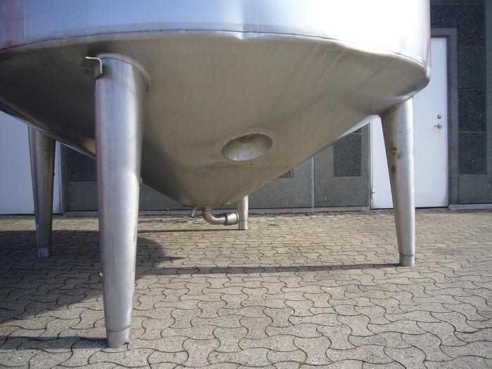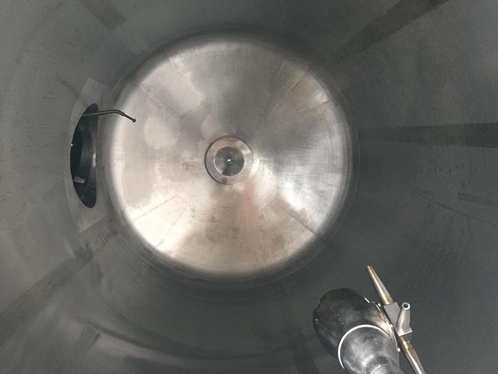 8.000 Liter, Best.-Nr.: T2447, Tank, rostfreier säurebeständiger Stahl, oben geschlossen, auf Füßen stehend., Isoliert, außen vollverschweißte Edelstahlverkleidung., Konische Ober- und Unterseite., Rührwerk von oben mit, untere Führung., Tankdeckel oben, Waschkugel oben., 2500 mm., Liter: 8.000, Material: Edelstahl AISI 316