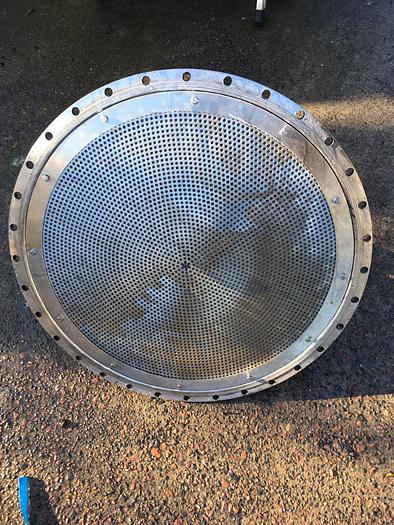 2.090 Liter, Best.-Nr.: T3638, Filterbehälter (Harz), Edelstahl, oben offen mit verschraubtem Deckel, in Fußkonsolen hängend., Ober- und Unterseite gewölbt, Filterrahmen oben und unten., 800 mm., Liter: 2.090, Material: Edelstahl AISI 304