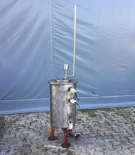 80 Liter, Best.-Nr.: T3633, Liter: 80, Material: Edelstahl AISI 316, Auf Lager: Ja, Menge auf Lager: 1 Stk., Artikel: Tank, Stehend: 3 Stk. Füße, Oben: Verschraubter Deckel, Innendurchmesser: 400 mm., Gesamthöhe: 2040 mm., Sonstiges: Verschraubtes Schauglas