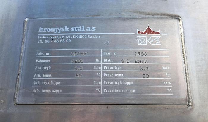 6.200 Liter, Best.-Nr.: T2454, Tank, Edelstahl,, oben geschlossen, auf Füßen stehend., Isoliert, außen vollverschweißt., Ober- und Unterseite gewölbt., Waschkugel oben., Tankdeckel an der Seite., 1750 mm., Liter: 6.200, Material: Edelstahl AISI 304