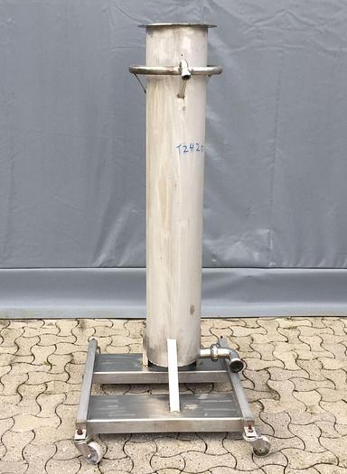 75 Liter, Best.-Nr.: T2420, Liter: 75, Material: Edelstahl AISI 304, Auf Lager: Ja, Menge auf Lager: 1 Stk., Artikel: Tank, Stehend: Auf einem Beingestell mit 4 Stk. Anzahl der Räder, Oben: Offen, Unten: Ebene, Innendurchmesser: 250 mm., Abmessungen: B 700 x L 860 x H1670 mm.