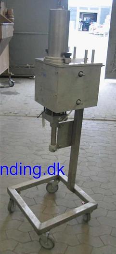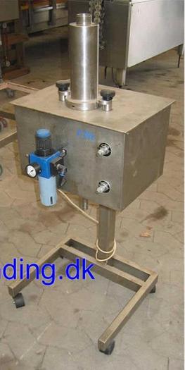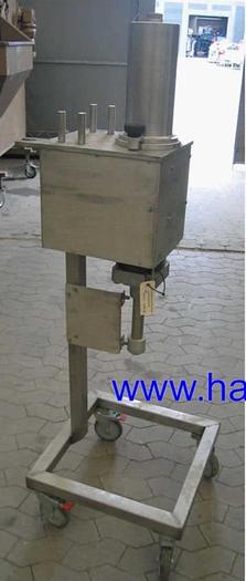 Best.-Nr.: F542, Abfüllmaschine, Edelstahl,, LS., Stehend auf Gestell mit Rädern., 0 - 500 ml Kolbendosierung., Druckluftbetrieben., Material: Edelstahl AISI 304