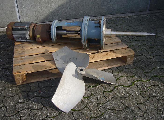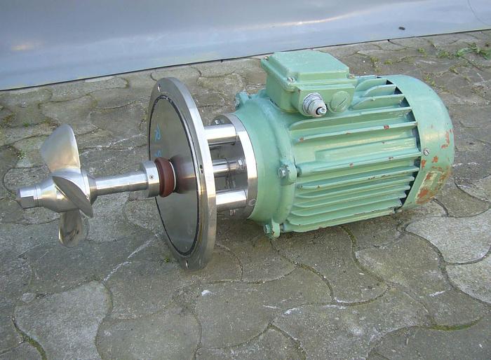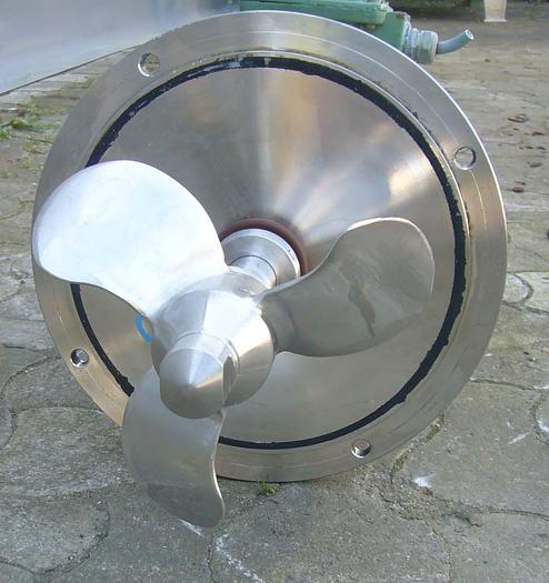 Best.-Nr.: R990, Rührwerk, Edelstahl,, für seitlichen Einbau in Tank., 4 kW Motor 1420 U/min 380 V., T 200 mm., 3-Blatt-Propeller., Material: Edelstahl AISI 304, Propellergröße: D 200 mm.