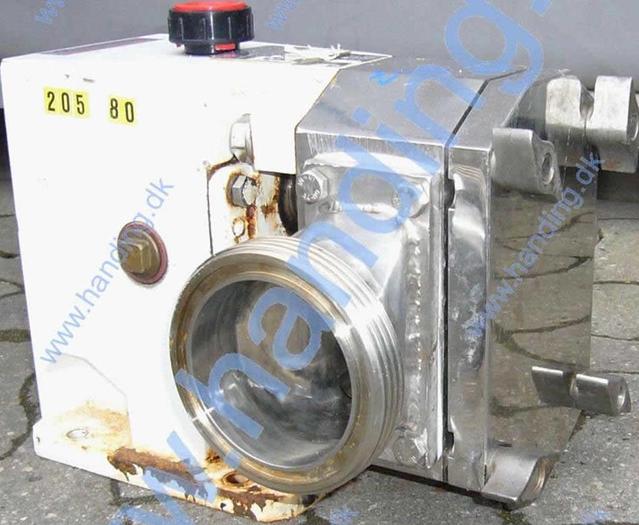 Best.-Nr.: PT2030, Drehkolbenpumpenkopf, Edelstahl,, Willi F. Grassel Typ 200 NDA,, Doppelmantel Pumpengehäuse., Horizontaler Durchfluss., Material: Edelstahl AISI 304