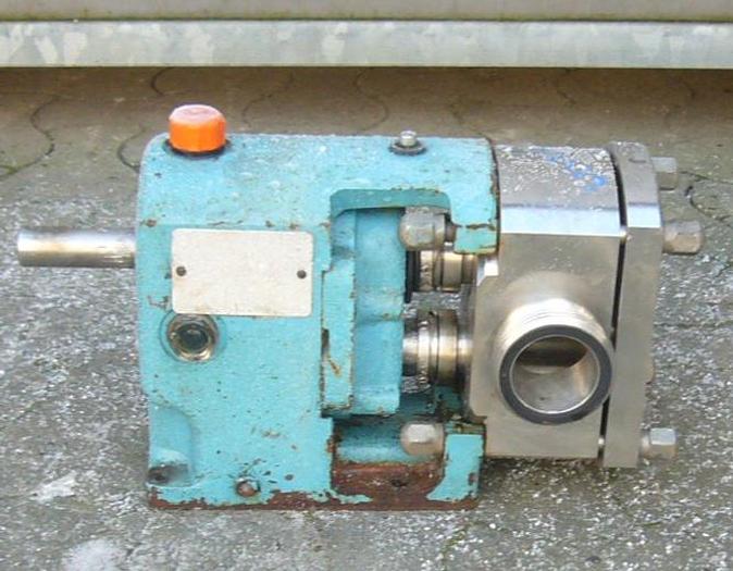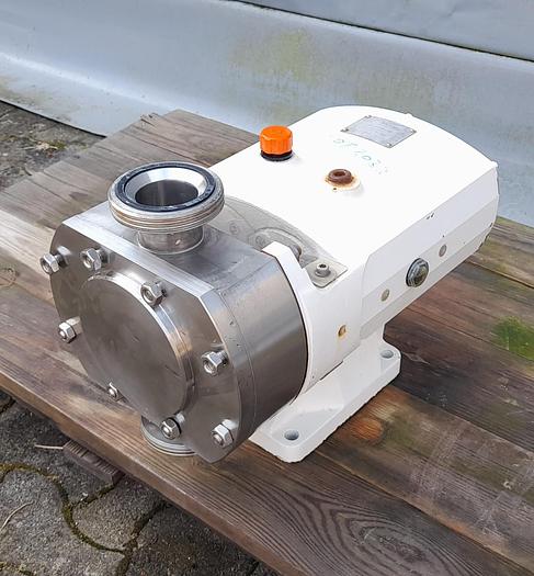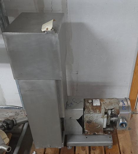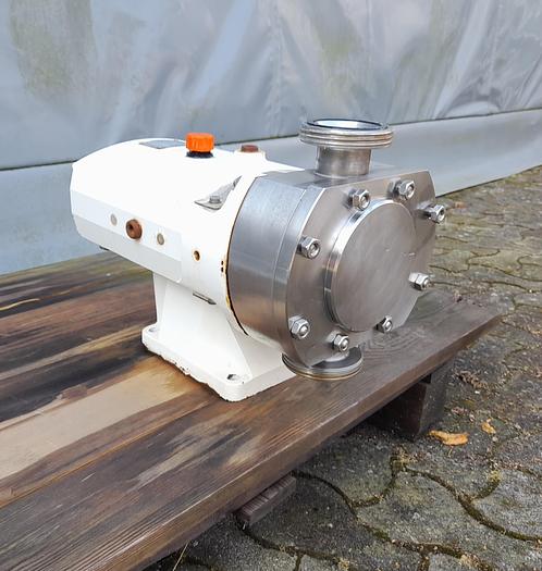 Best.-Nr.: PT2014, Drehkolbenpumpe, Edelstahl, Rotan Typ CD 66 EMFT-3U532., 2,2 kW Getriebemotor 235 U/min. 380 V., Montage auf lackiertem Fundament., Theoretische Kapazität 3161 l/h., Material: Edelstahl AISI 304