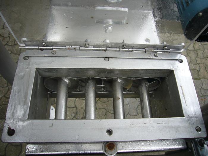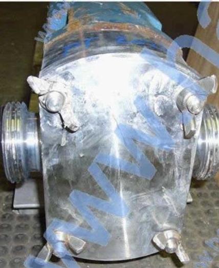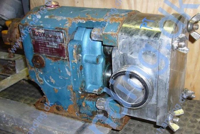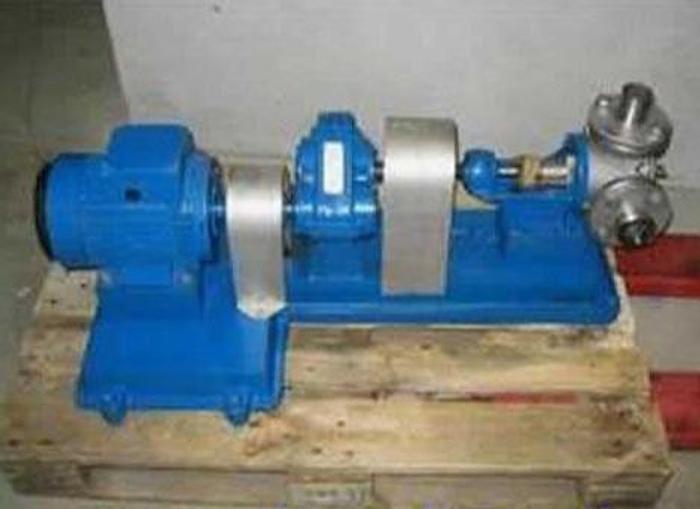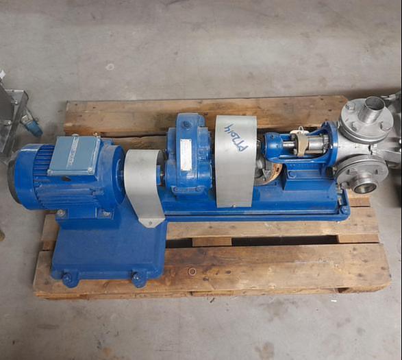 Best.-Nr.: PT2008, Drehkolbenpumpe, Edelstahl, Ibex Typ MOG 2020., 2 hk Getriebemotor 141 U/min. 220/380 V., Montage auf rostfreiem Fundament., Horizontale Strömung., Theoretische Kapazität 5414 l/h., Material: Edelstahl AISI 304