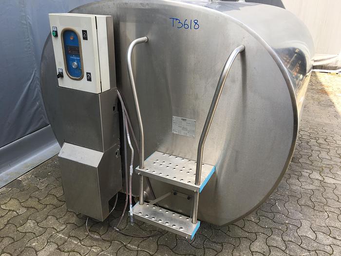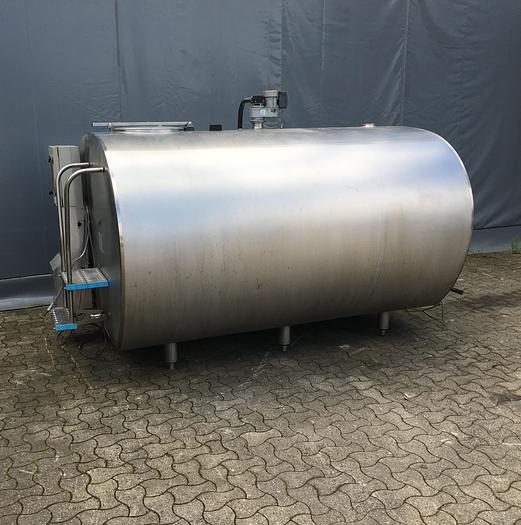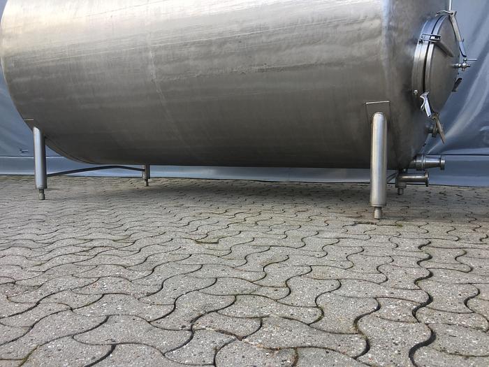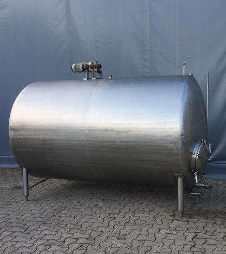 5.300 Liter, Best.-Nr.: T3622, Tank, Edelstahl,, geschlossen, auf Füßen liegend., Gewölbte untere Enden,, Tankdeckel im unteren Ende., Rührwerk von oben mit unterer Führungsbahn,, 1600 mm., Liter: 5.300, Material: Edelstahl AISI 304
