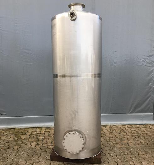 1.000 Liter, Best.-Nr.: T2305, Liter: 1.000, Material: Edelstahl AISI 304, Auf Lager: Ja, Menge auf Lager: 1 Stk., Artikel: Tank, Stehend: Zu Fuß mit LKW-Krippe, Oben: Konisch, Rührwerk: Flansch oben und seitlich, Innendurchmesser: 800 mm., Gesamthöhe: 2400 mm., Sonstiges: Sieb unten