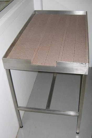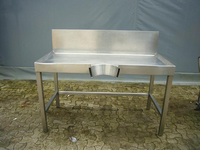 Best.-Nr.: D698, Trenntisch, Edelstahl,, auf 4 Beinen stehend., Rollenbahn unten., L 990 x B 570 mm., Material: Edelstahl AISI 304, Maße: L 990 x B 570 mm.
