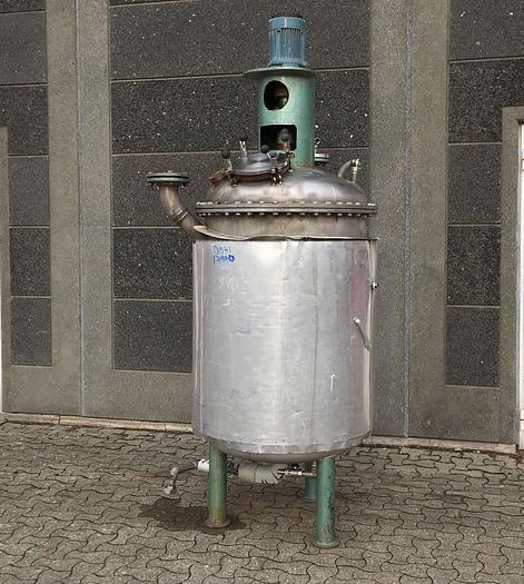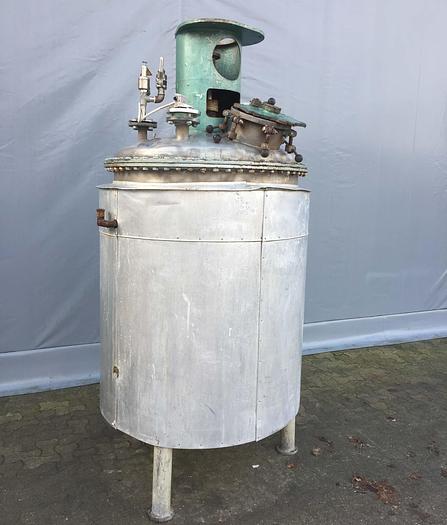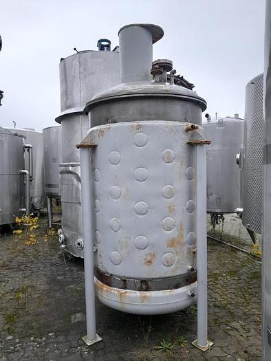 500 Liter, Best.-Nr.: T3541, Liter: 500, Material: Edelstahl AISI 316, Auf Lager: Ja, Menge auf Lager: 1 Stk., Artikel: Tank, Stehend: 3 Stk. Füße, Oben: Verzinkt, geschlossen und verschraubt, Unten: Verzinkt, Doppelmantel: Ja, Isoliert: Ja, Außenverkleidung: Aluminium, Tankabdeckung: Oben, 200 mm., Rührwerk: Ja, von oben, Motor: 1,1 kW - 220/380 Volt - 930 U/min., Arbeitstemperatur: Max 148 C, Arbeitsdruck: Max 2 Bar, Innendurchmesser: 800 mm., Außendurchmesser: D 900 mm., Gesamthöhe: 1480 mm.