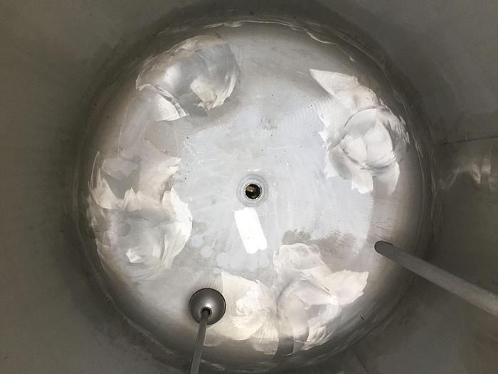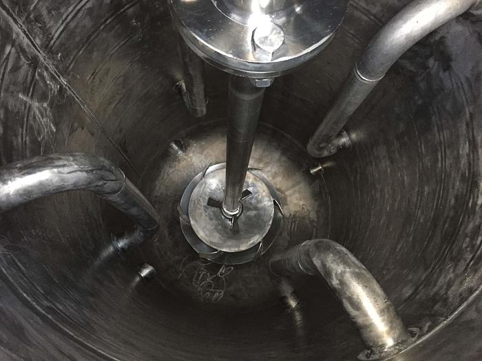 1.000 Liter, Best.-Nr.: T3540, Liter: 1.000, Material: Rostfreier säurebeständiger Stahl AISI 316, Auf Lager: Ja, Menge auf Lager: 1 Stk., Artikel: Tank, Stehend: 3 Stk. Füße, Oben: Verzinkt, Unten: Verzinkt, Doppelmantel: Ja, Isoliert: Ja, Außenverkleidung: Genietetes Aluminium, Revisionsdeckel: Oben, 250 mm., Turbolenzblech: 2 Stk., Rührwerk: Ja, Rührwerktyp: Stamo Turbinenrührer, Motor: 3 kW - 380/420 Volt - 700 U/min., Innendurchmesser: 990 mm., Außendurchmesser: T 1190 mm., Gesamthöhe: 2715 mm.