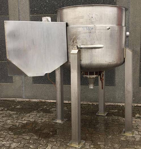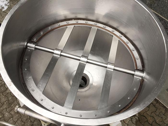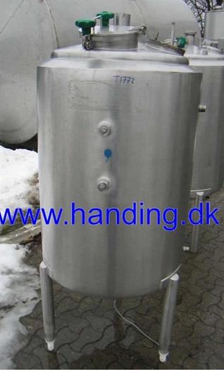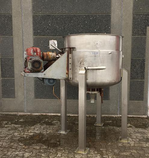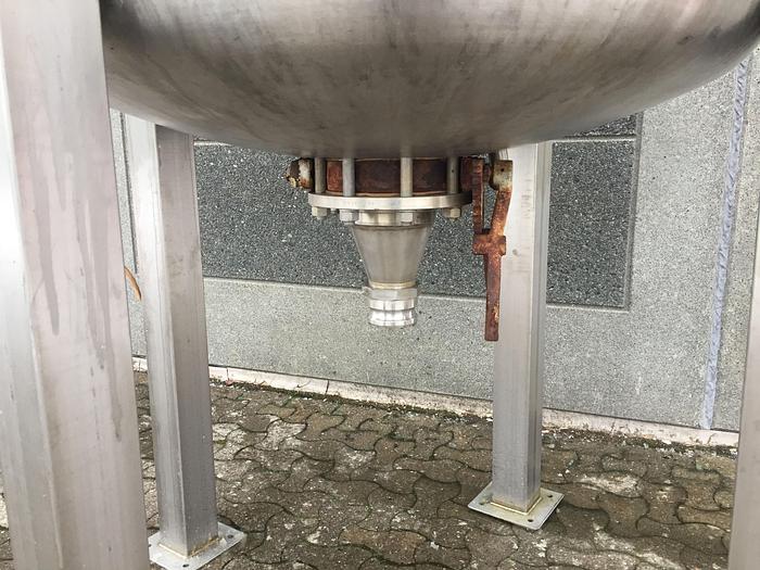 600 Liter, Best.-Nr.: T3539, Liter: 600, Material: Edelstahl AISI 316, Auf Lager: Ja, Menge auf Lager: 2 Stk., Artikel: Tank, Stehend: 4 Stk. Anzahl der Beine, Oben: Offen, Doppelmantel: Ja, Rührwerk: Ja, Rührwerkstyp: Horizontales Rahmenrührwerk mit Schaber, Motor: 0,71/1,3 kW - 380/420 Volt - 700/1330 U/min., Innendurchmesser: 1050 mm., Maße: B 1900 x H 1970 mm., Hersteller: DE DANSKE MEJERIERS MASKINFABRIK