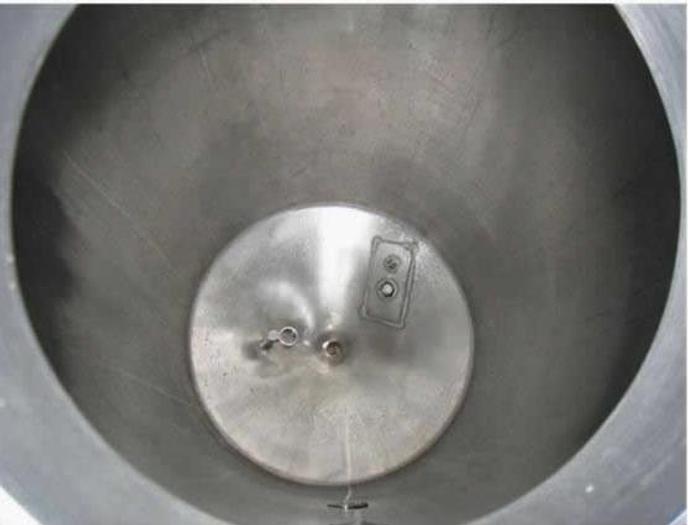 350 Liter, Lagernummer: T1772, Liter: 350, Material: Edelstahl AISI 304, Auf Lager: Ja, Menge auf Lager: 2 Stk., Artikel: Tank, Stehend: 3 Stk. Füße, Oben: Konisch, Unten: Konisch, Doppelmantel: Ja, Isoliert: Ja, Außenverkleidung: Vollverschweißter Edelstahl, Inspektionsdeckel: Ja, CIP: Ja, Innendurchmesser: 625 mm., Außendurchmesser: T 750 mm., Gesamthöhe: 1950 mm.