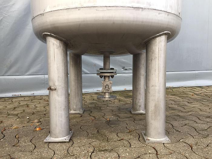 2.200 Liter, Best.-Nr.: T3544, Tank, rostfreier säurebeständiger Stahl, oben geschlossen, auf Beinkonsole stehend., Doppelmantel., Ober- und Unterseite gewölbt, Tankdeckel oben., Rahmenrührwerk von oben mit unterer Führungsbahn., 1200 mm., Liter: 2.200, Material: Edelstahl AISI 316