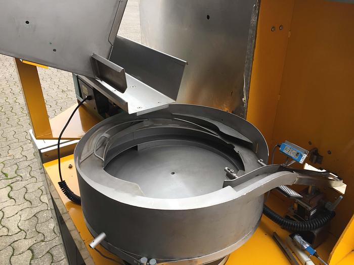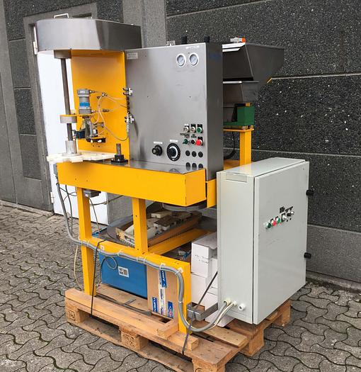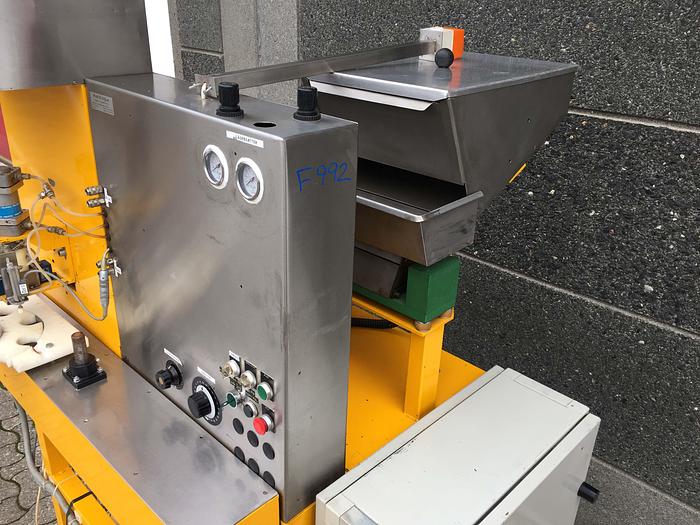 Best.-Nr.: F992, Kapselmaschine für die Montage von Druckdeckeln, Typ Duma., Karusselltyp mit automatischer Sortierung der Deckel und Montage., Einschließlich verschiedener Formate, ohne Förderband., Kapsel: Für die Montage von Druckdeckeln.