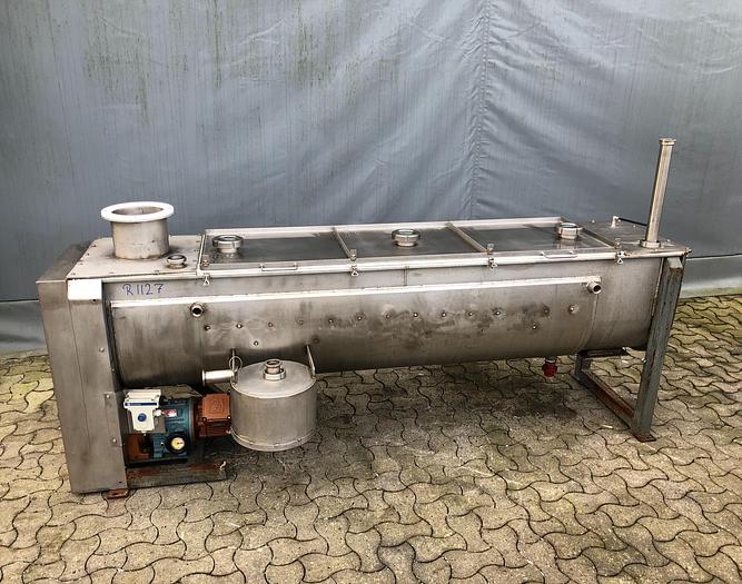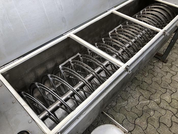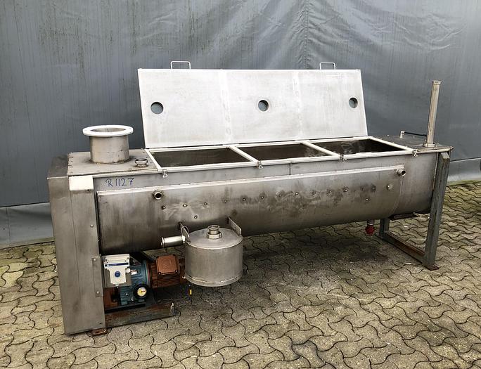 600 Liter, Best.-Nr.: R1127, Bandmischer/-trockner, Edelstahl., Trogtyp mit Klappdeckel,, Doppelmantel., Variable Geschwindigkeit,, L 2500 x B 500 x H 540 mm., Liter: 600, Material: Edelstahl AISI 304