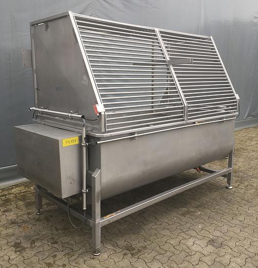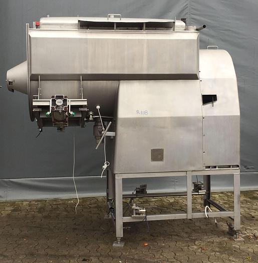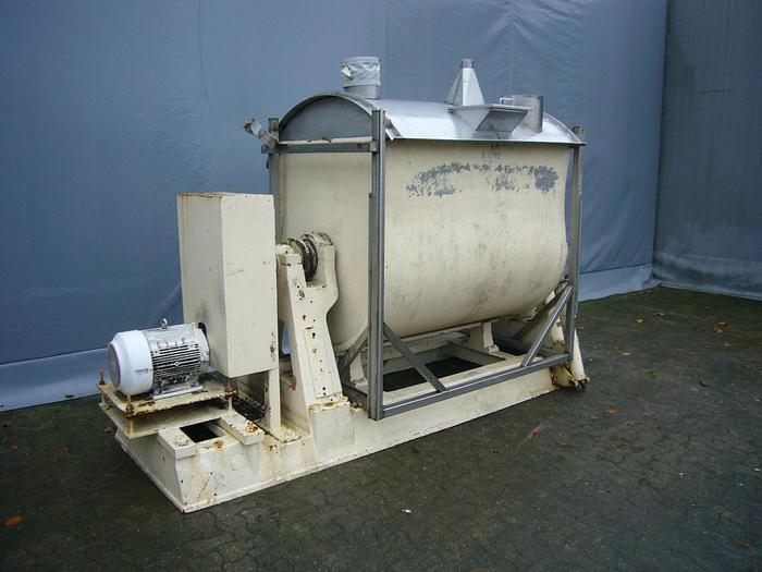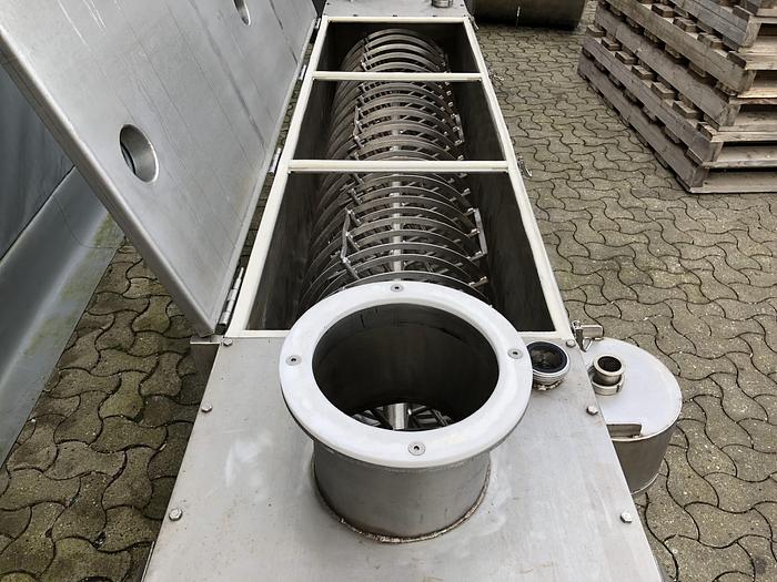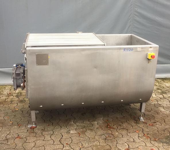1.000 Liter, Best.-Nr.: R1118, Bandmischer, Edelstahl,, Wolfking Bandtyp., Klappdeckel,, Zugauslauf im Boden,, L 2430 x B 1000 x H 2300 mm., Düsen für Stickstoff im Boden,, ohne Schaltschrank., Liter: 1.000, Material: Edelstahl AISI 304