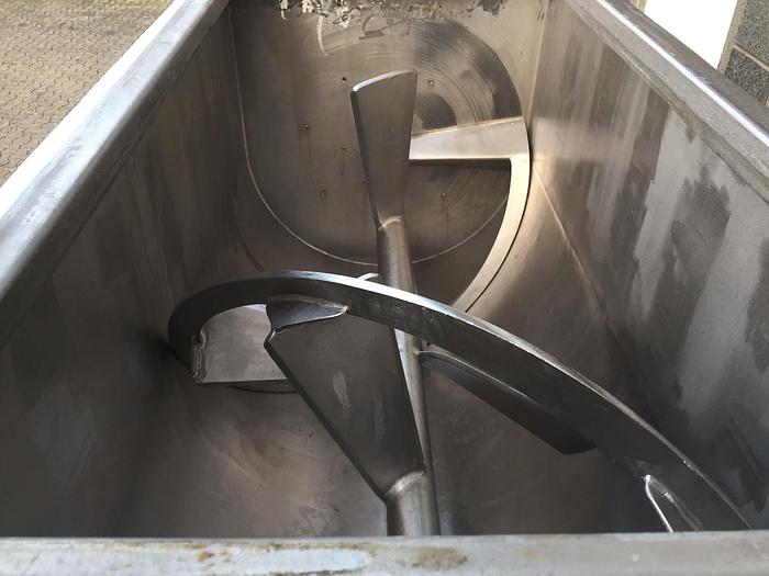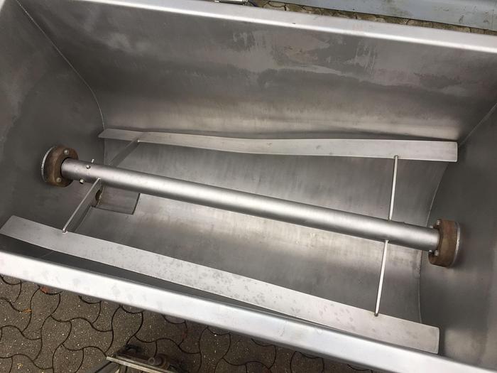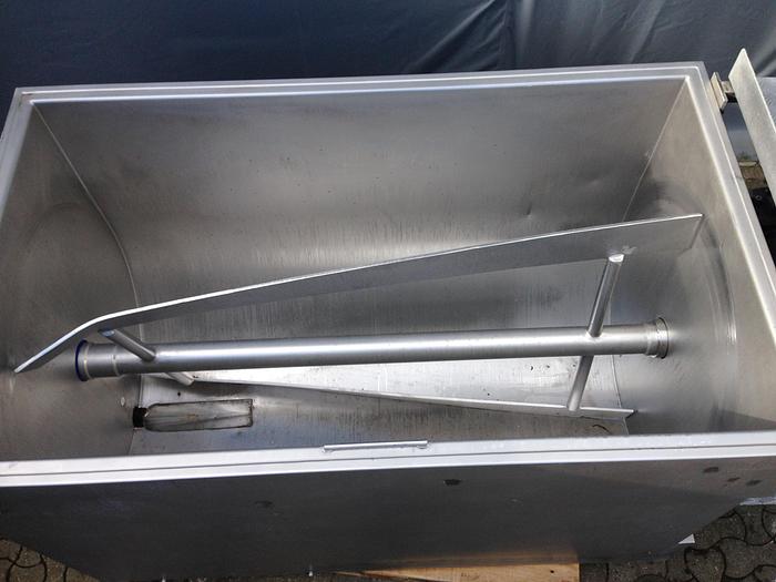 750 Liter, Best.-Nr.: R1120, Paddelmischer, Edelstahl,, Wolfking., 1-Welle,, 0,75 kW. Getriebemotor., 7,5 U/min., 230/400 Volt., Gleitzug im Boden, Außenmaße L 1800 x B 800 x H 1000 mm., Liter: 750, Material: Edelstahl AISI 304