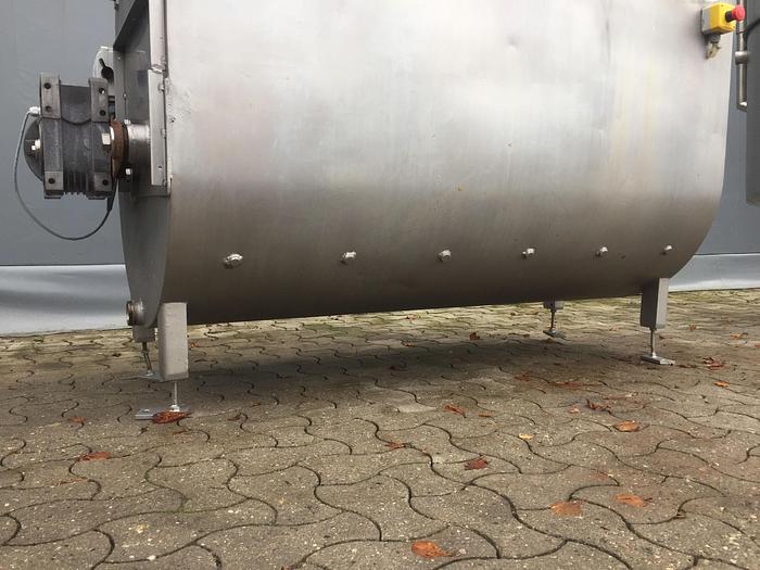 4.000 Liter, Best.-Nr.: T3483, Tank, Edelstahl,, oben geschlossen, auf Füßen liegend., Doppelmantel., Isoliert, außen rahmengenähte Edelstahlverkleidung., Tankdeckel oben,, Waschflügel oben., Rührwerk von oben mit unterer Führung,, 1410 mm., Liter: 4.000, Material: Edelstahl AISI 304