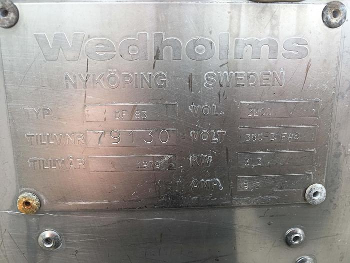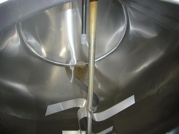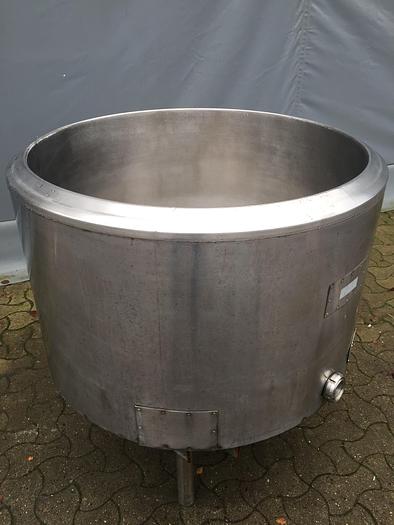 250 Liter, Best.-Nr.: T3491, Liter: 250, Material: Edelstahl AISI 304, Auf Lager: Ja, Menge auf Lager: 1 Stk., Artikel: Kippbarer Kessel, Stehend: Auf Beinkonsolen, Oben: Klappdeckel, Doppelmantel: Ja, Isoliert: Ja, Motor: 45 kW - 380/220 Volt, Arbeitstemperatur: 0 - 123 C., Innendurchmesser: 835 mm., Außendurchmesser: T 910 mm., Maße: L 1550 x B 1000 x H 1010 mm., Hersteller: Jøni, Typ: H 250, Baujahr: 1994, Sonstiges: Elektro beheizt