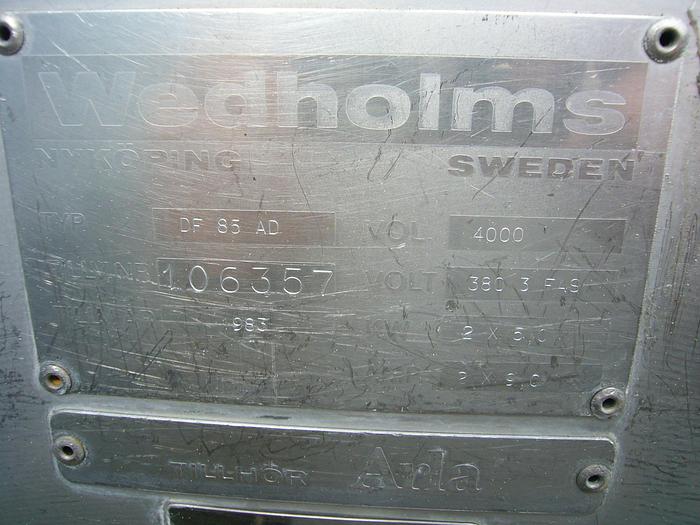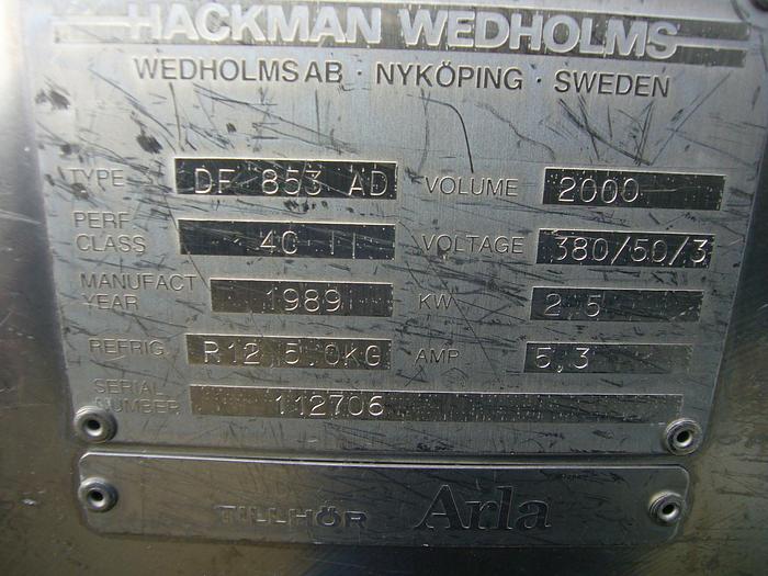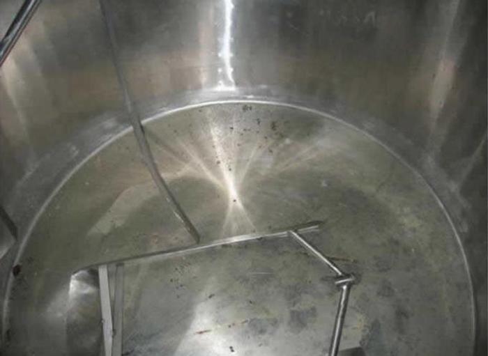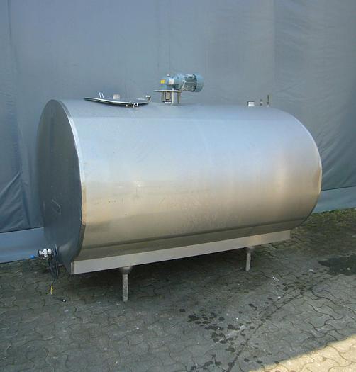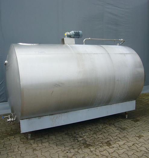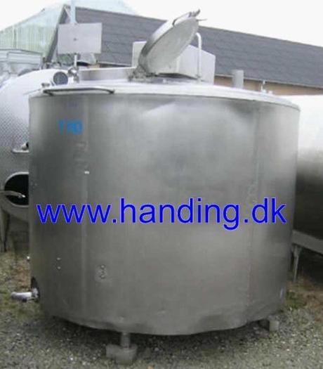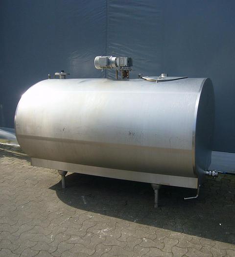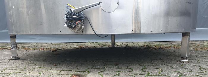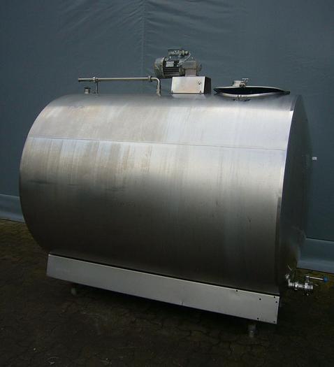 15.000 Liter, Best.-Nr.: T1579, Käsekessel, Edelstahl, geschlossen, auf Füßen stehend., Doppelmantel., Isoliert., Außen vollverschweißte Edelstahlverkleidung., Doppeltwirkendes Rahmenrührwerk von oben., Alfa Laval, 2900 mm., Liter: 15.000, Material: Edelstahl AISI 304