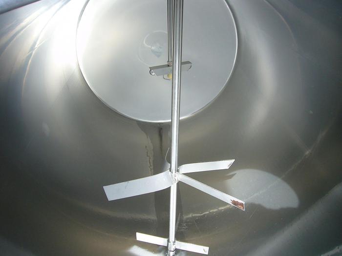 3.200 Liter, Best.-Nr.: T3489, Tank, Edelstahl,, oben geschlossen, auf Füßen stehend., Doppelmantel., Isoliert, außen vollständig rahmengenähte Edelstahlverkleidung., Konischer Deckel,, Tankdeckel oben., Rührwerk von oben,, 1800 mm., Liter: 3.200, Material: Edelstahl AISI 304