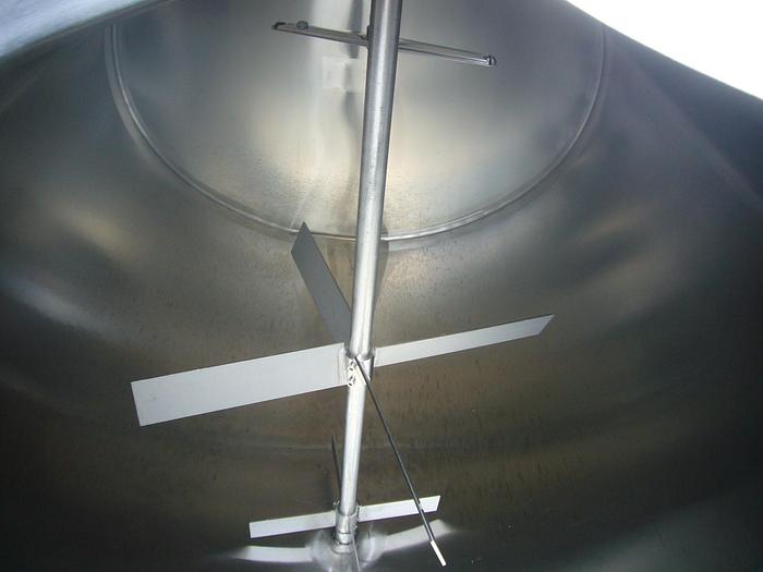 2.000 Liter, Best.-Nr.: T3476, Tank, Edelstahl,, auf Füßen liegend., Doppelmantel., Isoliert, außen vollrahmengenähte Edelstahlverkleidung,, Tankabdeckung oben., Waschflügel oben,, Rührwerk von oben., 1250 mm., Liter: 2.000, Material: Edelstahl AISI 304