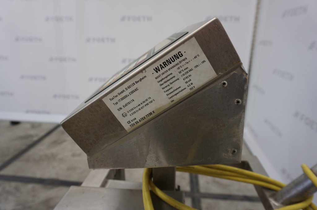 General SKU245P317 HerstellerSystec GmbH (DE) Typ IT 3000 Ex Mobile Weighing Masch.No.070174 Haupteigenschaften MaterialEdelstahl Spezifizierte Eigenschaften - Verschiedene Transport MaterialEdelstahl Verschiedene Transport Leistungmin.2,0 KG max.300 KG Information StandortBarneveld Platzbedarf1,4x1,1 M Totalhöhe1,2 M Gewicht150 KG Zusätzliche SpezifikationenMax. Leistungsaufnamhe 4,5 W, Volt 110-230 VAC, max temp. 50gr.C (ATEX) Was Sie von Maschinen von Foeth erwarten können: -- Maschine funktioniert fähig -- Zu einem reduzierten Preis im Vergleich zu Neuem -- Bereit, überall auf der Welt zu versenden -- Gerne können Sie die Maschine in Barneveld, Niederlande, ins ...