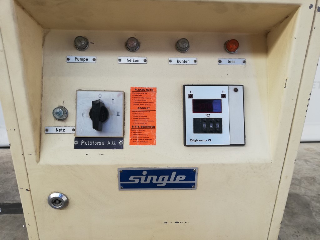 General SKU291N360A HerstellerSingle Temperiertechnik GmbH (D) TypSTO1-18-25-S Masch.No.83918 Baujahrunknown Haupteigenschaften Heiz (Material)Elektrisch Leistung18 KW Spezifizierte Eigenschaften - Temperiergerät MaterialBaustahl Temperiermaschinecheck Heizleistung18 kW Elektrische Leistung20 kW 380 Volt Mit Temperaturreglercheck Information StandortBarneveld Fahrbarcheck Mit Schaltercheck Platzbedarf0,8x0,5 M Totalhöhe0,8 M Gewicht140 Kg Was Sie von Maschinen von Foeth erwarten können: -- Maschine funktioniert fähig -- Zu einem reduzierten Preis im Vergleich zu Neuem -- Bereit, überall auf der Welt zu versenden -- Gerne können Sie die Maschine in Barneveld, N ...