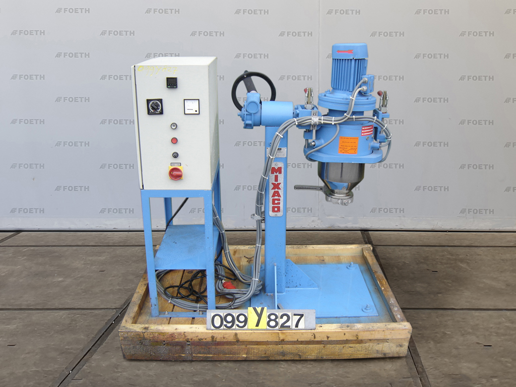 General SKU099Y827 HerstellerMixaco TypLab. CM-12 Disp. №SN 010280 Baujahr2001 Gebaut auf Gestellcheck Haupteigenschaften MaterialEdelstahl Inhalt12 Ltr. Motor3 KW Spezifizierte Eigenschaften - Kaltmischer KaltmischerContainer mixer (1x) Inhalt10 Ltr (useful) Kesselabmessungendia. 250x135mm, Conical bottom 120mm Handbediente Auslaufdia. 70mm Mit Motor3,0 KW, 230/415 Volt Stufenlos regelbare Antrieb(frequency converter) MaterialEdelstahl Information StandortBarneveld Mit Schaltschrankcheck Platzbedarf1,5x1,0 M Totalhöhe1,7 M Technical specs Zusatzinformationconical bottom 120 mm Was Sie von Maschinen von Foeth erwarten können: -- Maschine funktioniert fähig --  ...