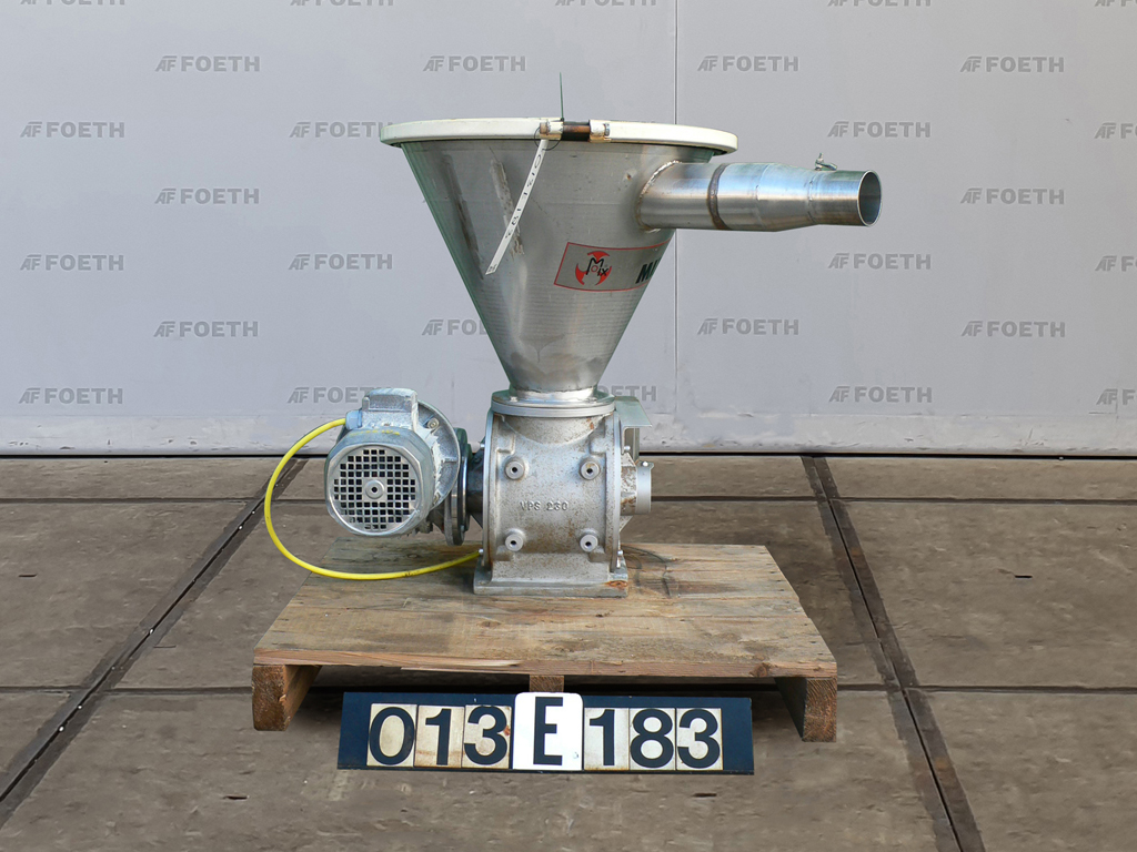 General SKU013E183 HerstellerMix SRL Italy TypVPS-230 Baujahrunknown StandortBarneveld Haupteigenschaften MaterialEdelstahl Motor0.55 KW Einlass durchm.230 mm Spezifizierte Eigenschaften - Zellenradschleuse MaterialEdelstahl Zellenradschleuse(1x) Rotordurchmesser230mm Rotorbreite195mm Einlaufdia. 145mm Einlaufflanschabmessungendia. 210mm Auslauf175x150mm Auslaufflanschabmessungen260x220mm Mit Trichtercheck Mit Motor0,55 kW 220/380 Volt Information Platzbedarf1,0x0,8 M Totalhöhe0,8 M Was Sie von Maschinen von Foeth erwarten können: -- Maschine funktioniert fähig -- Zu einem reduzierten Preis im Vergleich zu Neuem -- Bereit, überall auf der Welt zu versenden --  ...