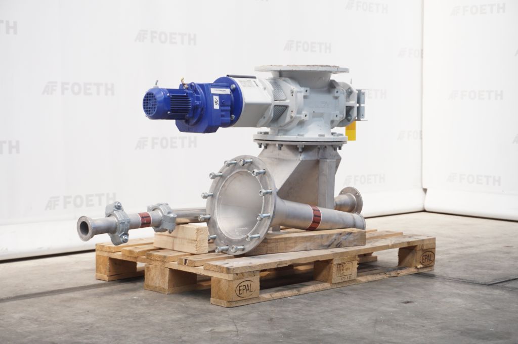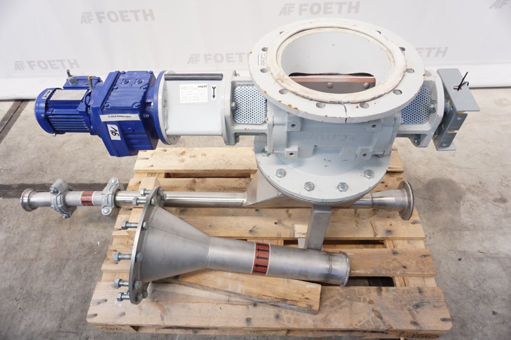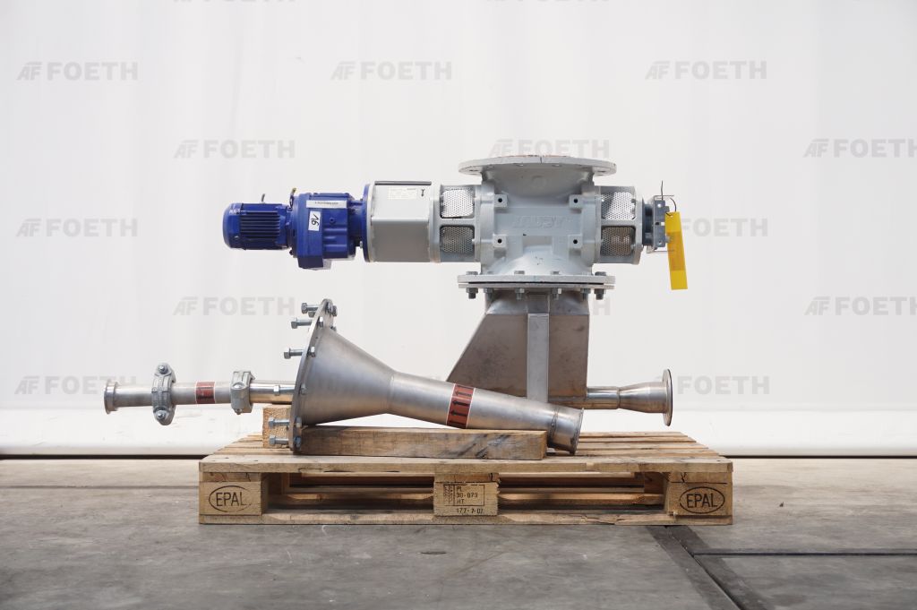 General SKUR0261 HerstellerJaudt Dosiertechnik (D) StandortBarneveld Typ212-0696.40 Haupteigenschaften MaterialBaustahl Motor0.25 KW Einlass durchm.180 mm Spezifizierte Eigenschaften - Zellenradschleuse MaterialBaustahl Zellenradschleusecheck Rotor mit Abstreifercheck Rotordurchmesser180mm Rotorbreite270mm Anzahl Kammer:8 Kammerabmessungen270x65x60mm Einlaufdia 245mm Einlaufflanschabmessungendia. 400mm Auslaufdia. 245mm Auslaufflanschabmessungendia. 400mm Einbauhoehe300mm Mit Motor0,25 kW 230/400 Volt Rotordrehzahl7,6 rpm Aussenliegende Lagercheck Mit Stopfbuchspackungencheck Information №0425371 Baujahr2012 Platzbedarf1,5x0,4 M Totalhöhe0,7 M Gewicht200 Kg ...