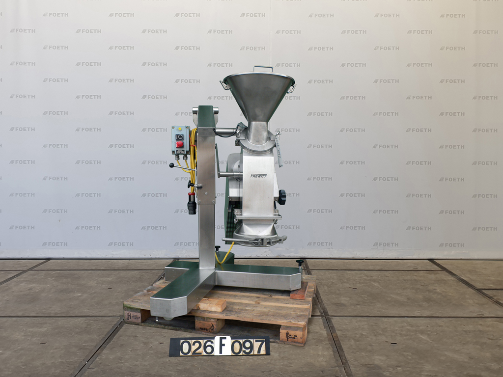 General SKU026F097 HerstellerFrewitt Fribourg TypSGV-0013 (dia 120 check 160) №1198122 Baujahr1998 StandortBarneveld Haupteigenschaften MaterialEdelstahl Motor2.2 KW Breite120 mm Spezifizierte Eigenschaften - Granuliersieb GranuliersiebSieving, sizing and rasping machine (1x) Siebabmessungendia. 120x160mm, 3 sieves included Mit Trichtercheck Motor2,2 KW, 230/400 Volt (Ex) Stufenlos regelbare Antriebcheck Drehzahl± 335-1920 Rpm MaterialEdelstahl 1.4404 (316L) Information Gebaut auf nichtros.St.Gestellcheck Fahrbarcheck Mit Schaltercheck Platzbedarf1,2x1,2 M Totalhöhe1,5 M Gewicht200 KG CEcheck ATEX konformecheck Technical specs Zusatzinformation3 sieves inclu ...