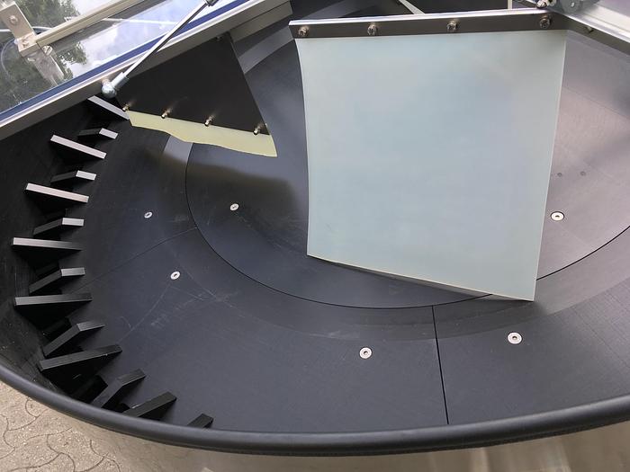 Lagernummer: F976, Material: Edelstahl AISI 304, Lager: Ja, Lagerbestände: 1 Stück, Artikel: Entschlüsseler, Konstruktion: Aufstellen von Plastikflaschen usw., Motor: Variable Drehzahl, Hersteller: Groninger, Typ: ZSK 1500