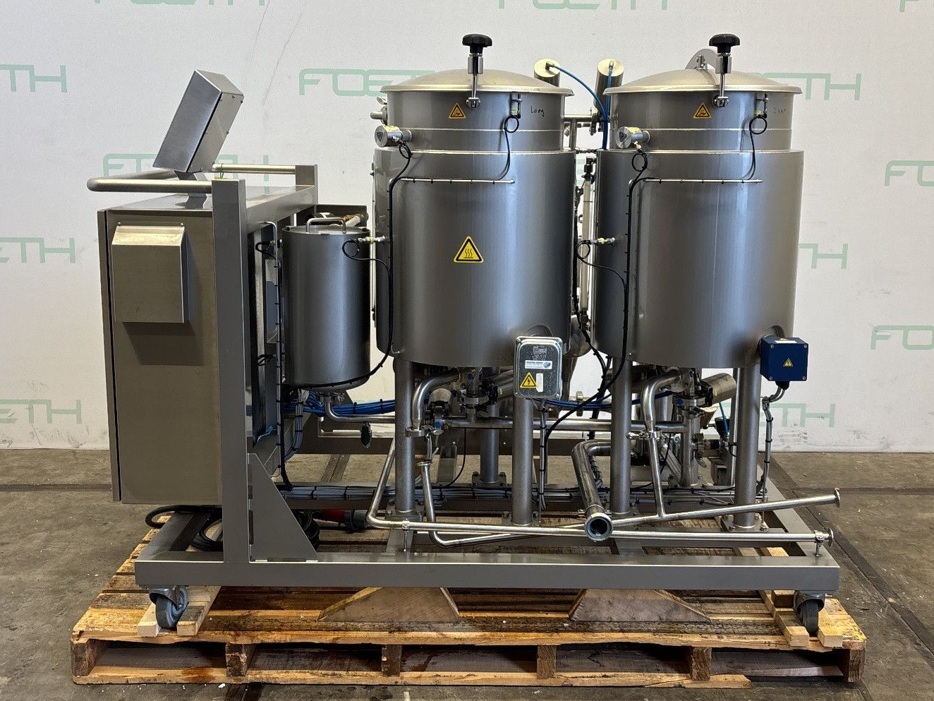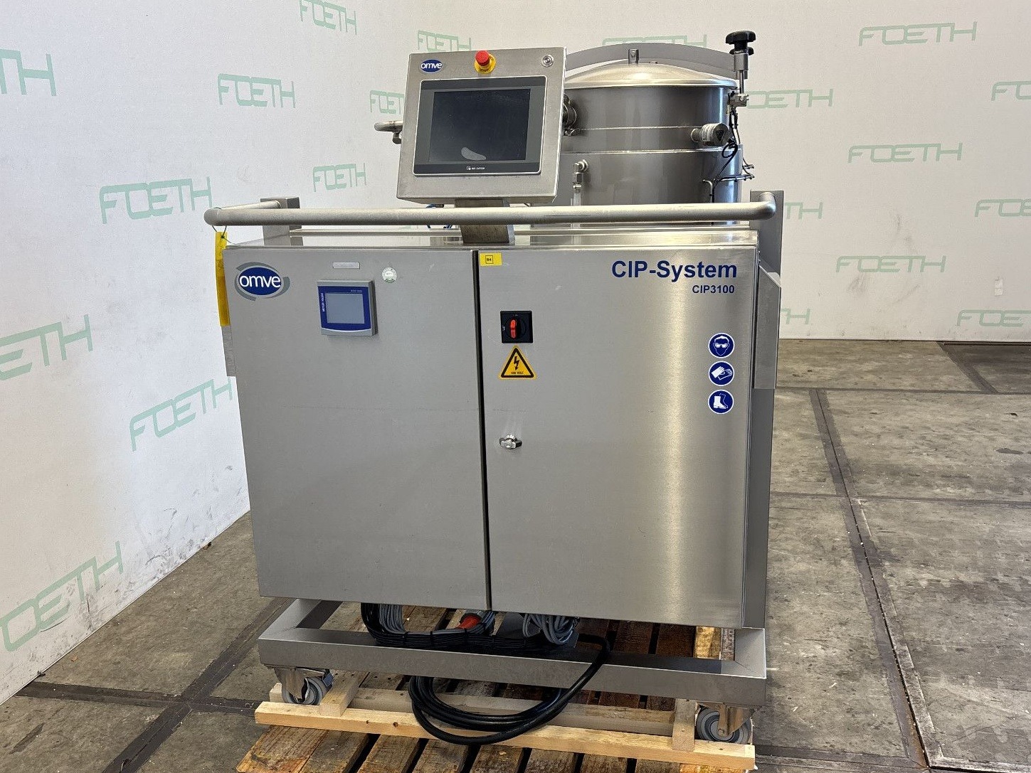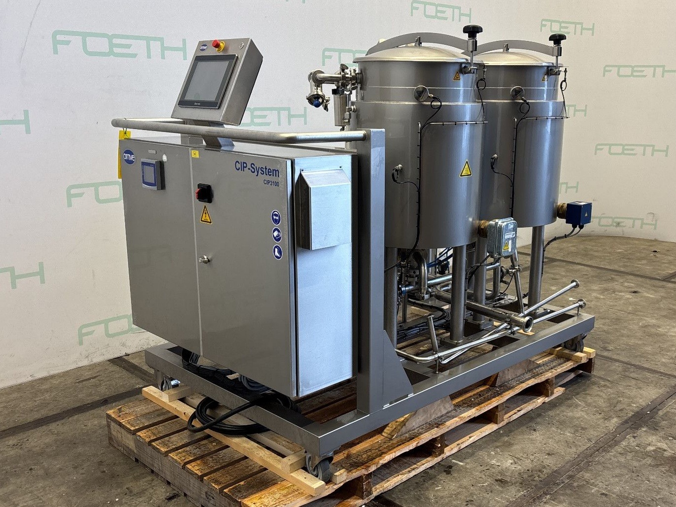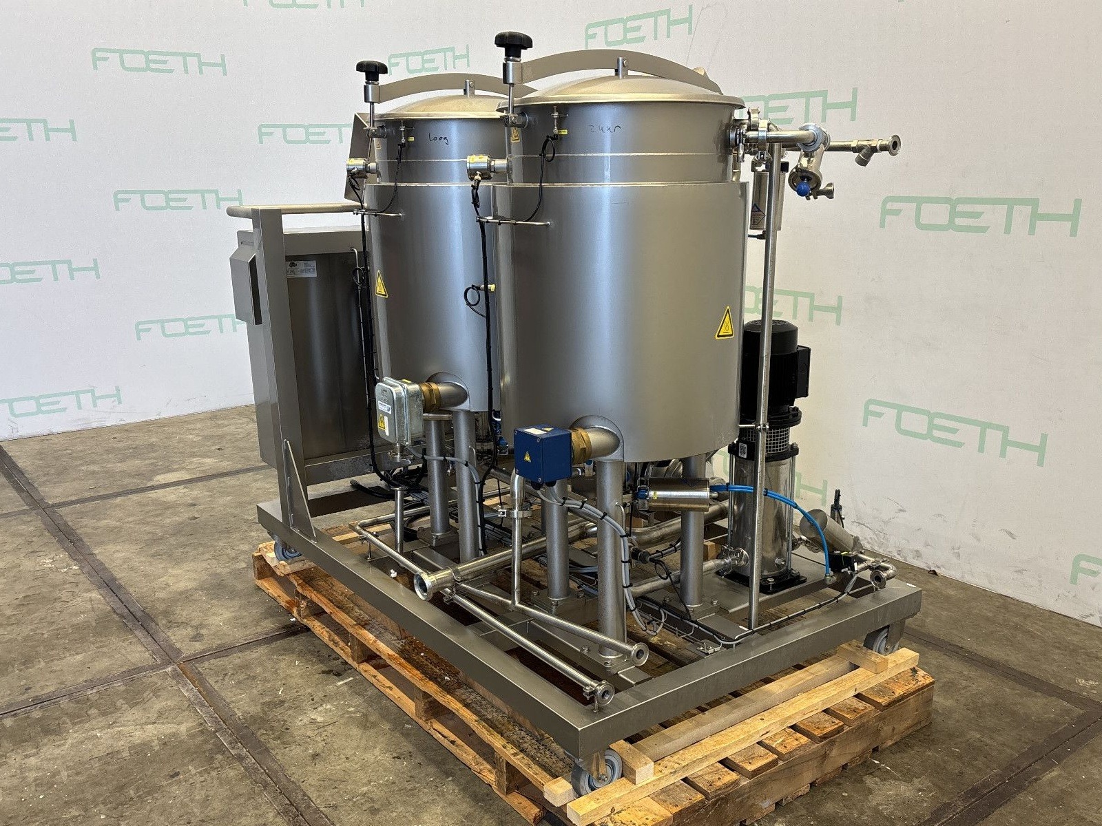 General SKU283X377 HerstellerOmve TypCIP3100 №180330-1 Baujahr2019 Gebaut auf Füssecheck on skid with wheels Haupteigenschaften MaterialEdelstahl Inhalt200 Ltr. Spezifizierte Eigenschaften - Vertikale Behälter MaterialEdelstahl 1.4306 (304L) Geschlossene vert. Behältercheck Inhalt2x 100 l. Kesselabmessungen2x ø 600x600 mm Mit Deckelcheck Klöpperbodencheck AuslaufDN40 Mit Doppelmantelcheck Information StandortBarneveld Mit Schaltschrankcheck (as is) Platzbedarf2,00x1,20 m Totalhöhe1,70 m Gewicht603 kg CEcheck Zusätzliche SpezifikationenWith 2 jacketed vessels, volume: 100 L each. Bedu pump, type MXVL 25-208G, 1.5 kW, 400 V Packo centrifugal pump, type CRP ...