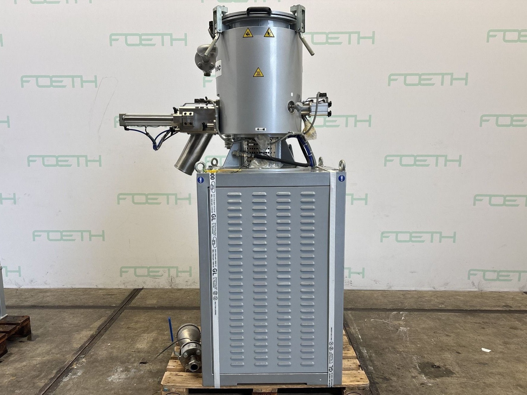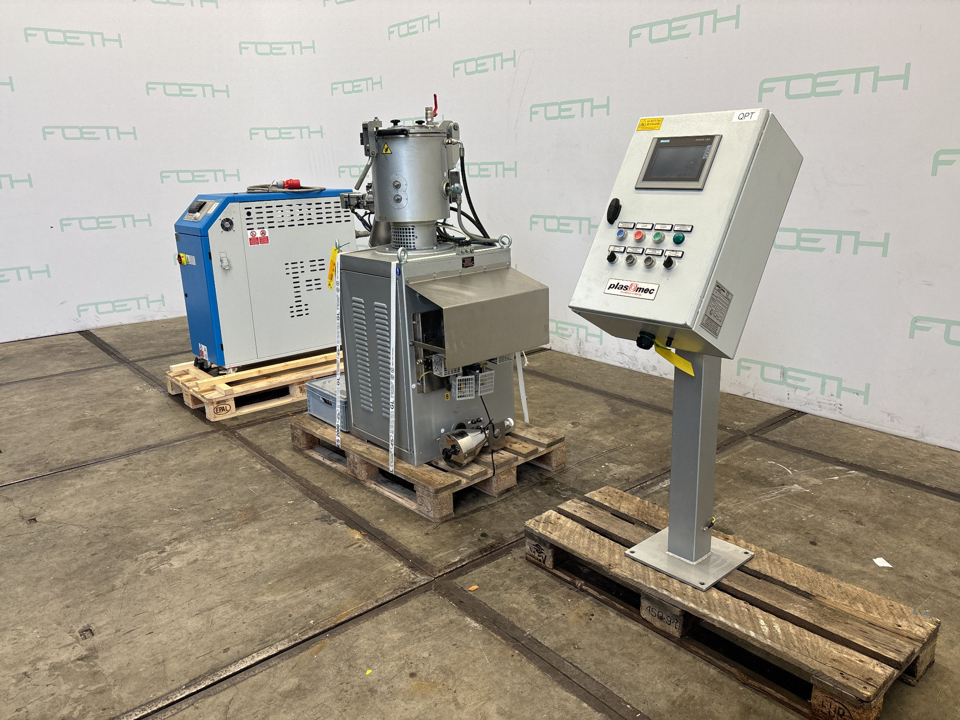 General SKU399X1180 StandortBarneveld CEcheck HerstellerPLAS MEC S.r.l. Haupteigenschaften MaterialEdelstahl Inhalt13 Ltr. Motor11 KW Spezifizierte Eigenschaften - Heissmischer Heiz-Kühl-Kombinationcheck Heizmischercheck Inhalt10 Ltr. (13 Ltr.) Mit Motorcheck (11 kW) Stufenlos regelbare Antriebcheck Rotordrehzahl5 — 50 rpm Handbediente Auslaufcheck MaterialEdelstahl 1.4301 (304) Information TypDMP-13 Baujahr2016 Gebaut auf Gestellcheck Mit Schaltschrankcheck (supplied with electrical cabinet & control system; as is) Zusätzliche SpezifikationenEquipped with an Industrial Frigo WTP 18/140 pressurized water temperature control unit: Temperature range from +10°C up  ...