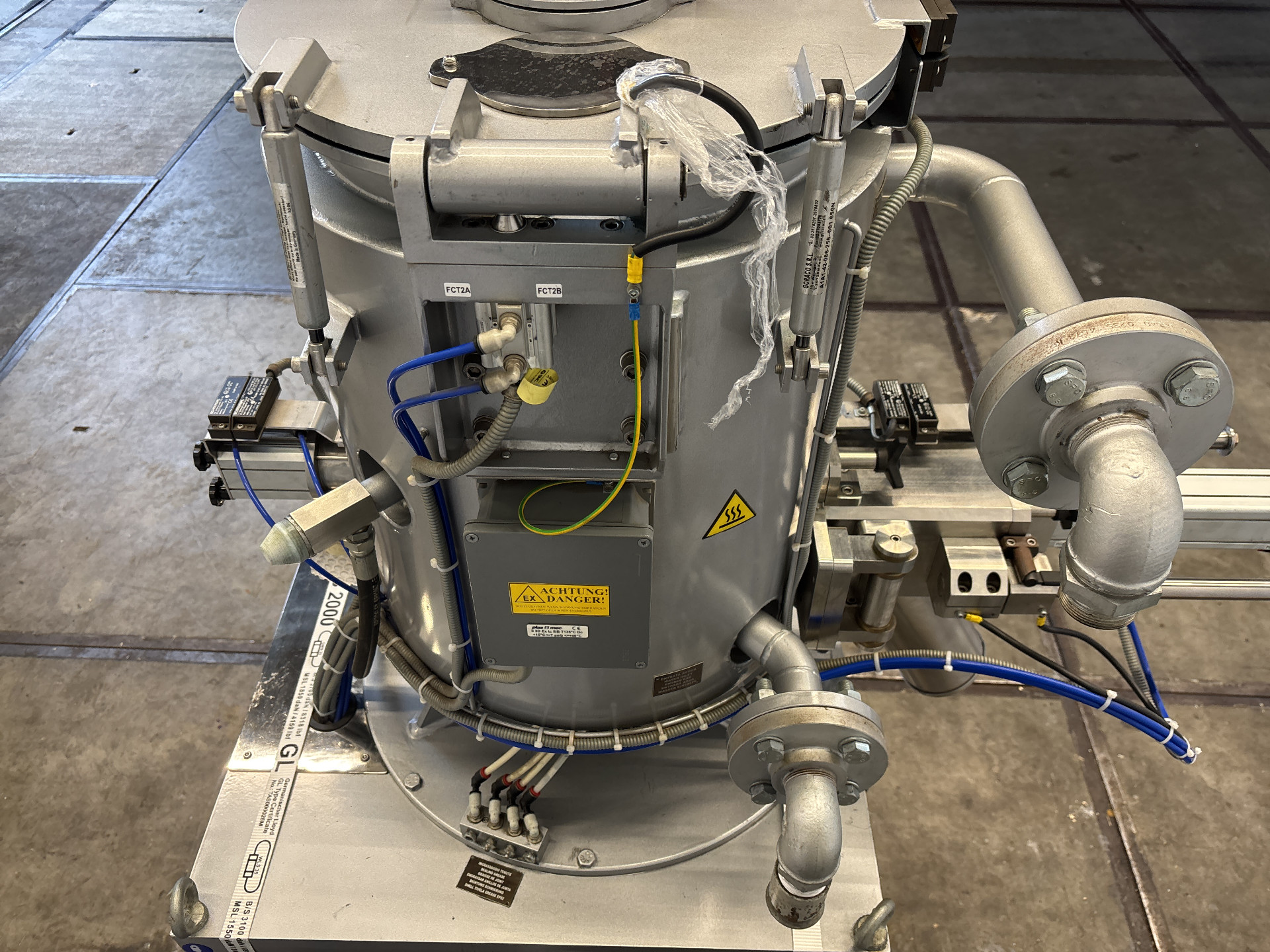 General SKU399X1184 StandortBarneveld CEcheck HerstellerPlas Mec TypDMP-80 FV Pressure Betriebsdruck5 Bar Haupteigenschaften MaterialEdelstahl Inhalt80 Ltr. Motor55 KW Spezifizierte Eigenschaften - Heissmischer Heiz-Kühl-Kombinationcheck Heizmischercheck Inhalt50 Ltr. (80 Ltr.) Mit Doppelmantelcheck Mit Motorcheck (55 kW AC) Stufenlos regelbare Antriebcheck Rotordrehzahl5 — 50 rpm Luftbediente Auslaufcheck Handbediente Auslaufcheck MaterialEdelstahl 1.4306 (304L) Information №013 217 18 Baujahr2018 Gebaut auf Gestellcheck (machine has a full steel basement frame) Mit Schaltschrankcheck (electrical panel + local control panel; as is) Zusätzliche Spezifikatio ...