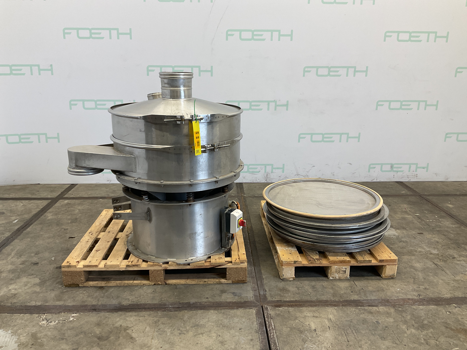 General SKU347X811 StandortBarneveld CEcheck Haupteigenschaften MaterialEdelstahl Oberfläche0.5 M2 Abmessung durchm.800 mm Spezifizierte Eigenschaften - Rüttelsieb Rüttelsiebcheck Siebfläche0,5 m² Siebdecke1 Siebabmessungen810 mm Mit Deckelcheck Einlaufø 200 mm Auslaufø 215 mm Antrieb mit Rüttelmotorcheck Motorcheck 380 V Mit extra Siebdecke11 (150 µm; 300 µm; 315 µm; 2x 1,00 mm; 1,30 mm; 1,40 mm; 2x 2 mm; 2 x 3 mm) 3 mm MaterialEdelstahl 1.4404 (316L) Information HerstellerRitec Baujahr1994 Gebaut auf nichtros.St.Gestellcheck Mit Schaltercheck Platzbedarf1,20 x 1,00 m Totalhöhe1,25 m Was Sie von Maschinen von Foeth erwarten können: -- Maschine funkti ...