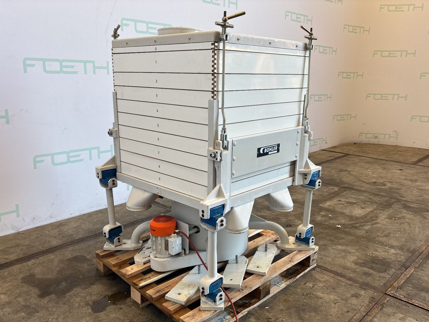 General SKU364X913 StandortBarneveld Haupteigenschaften MaterialEdelstahl Motor0.75 KW Länge830 mm Spezifizierte Eigenschaften - Sortiersieb Sortiersiebcheck Siebdecke9 Siebabmessungen830 x 830 mm Mit Deckelcheck Einlauf2x ø 240 mm Auslauf4x ø 240 mm Antrieb mit Ruettelmotorcheck Motor0,75 kW, 230/400 V, 1395 rpm Mit Ballenreinigungcheck MaterialEdelstahl Information HerstellerBühler TypRotostar Masch.No.1004281 Platzbedarf1,10 x 1,10 m Totalhöhe1,40 m Gewicht550 kg Was Sie von Maschinen von Foeth erwarten können: -- Maschine funktioniert fähig -- Zu einem reduzierten Preis im Vergleich zu Neuem -- Bereit, überall auf der Welt zu versenden -- Gerne könne ...