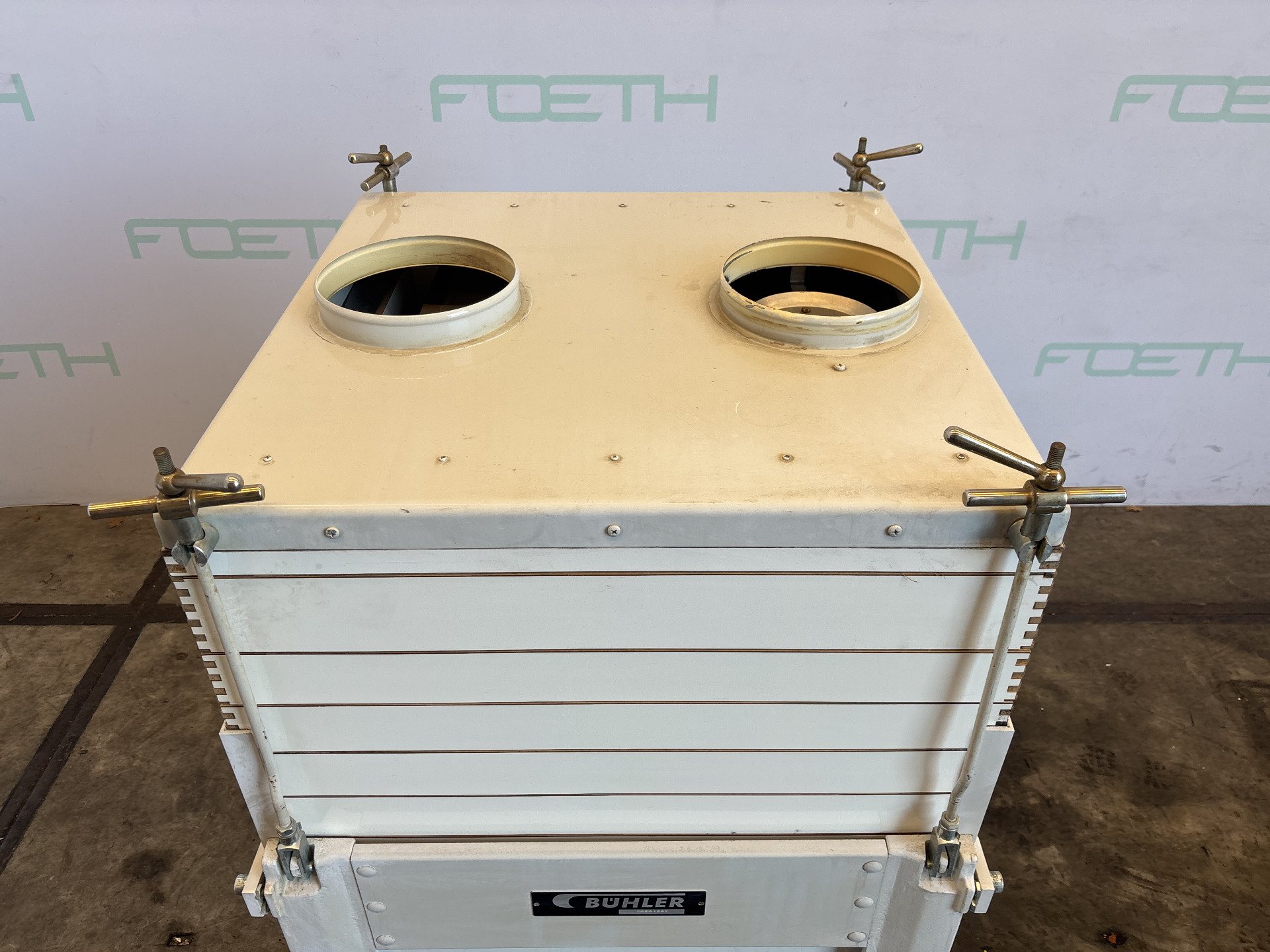 General SKU390X1009 HerstellerBühler StandortBarneveld CEcheck TypOTWG-160-C (static) Haupteigenschaften MaterialEdelstahl Motor0.55 KW Oberfläche1.59 M2 Spezifizierte Eigenschaften - Fließbetttrockner Kontinu Kontinu Fliessbetttrocknercheck Fläche1,59 m² Produkteinlauf190 × 110 mm ProduktauslaufDN 150 LufteinlaufDN 400 LuftauslaufDN 400 Motor0,55 kW 290/500 V Stufenlos regelbare Antriebcheck pulsator 26–128 rpm Mit Gebläsecheck (PILLER; Type: 40351KE 80315) Motor30 kW Leistung3.1 m³/s Max. Temperatur250 °C Fliessbetttrockner kontinu Kühlbandcheck MaterialEdelstahl 1.4306 (304L), Edelstahl (Sandvik 1200SA) Information №10 263 218 Baujahr1996 Gebaut ...